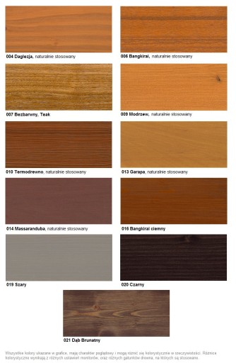 PALETA poniżej przedstawia kolory olejów tarasowych marki OSMO dostępne w naszej ofercie
