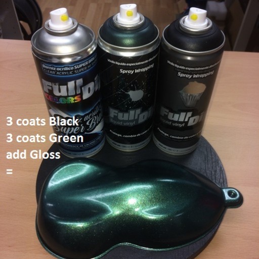 Są to spraye nadające efekt. Ostateczny kolor zależy od tego jakiego koloru zostanie użyty podkład. Zupełnie inny kolor uzyskamy stosując Spraye Diamond Pearl na bazę czarną (efekt taki jak na zdjęciach), inny na zieloną (intensywny kolor) a jeszcze inny na białą (pozostanie biały ale z zieloną poświatą tzw. "Color Shift Effect"