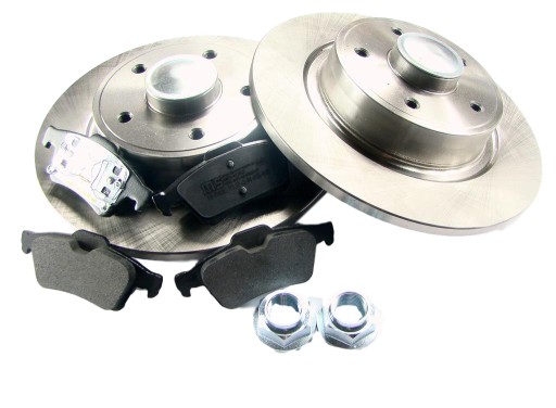 TARCZE x2 + KLOCKI TYŁ RENAULT LAGUNA II +ŁOŻYSKA +PIERŚCIENIE ABS KPL