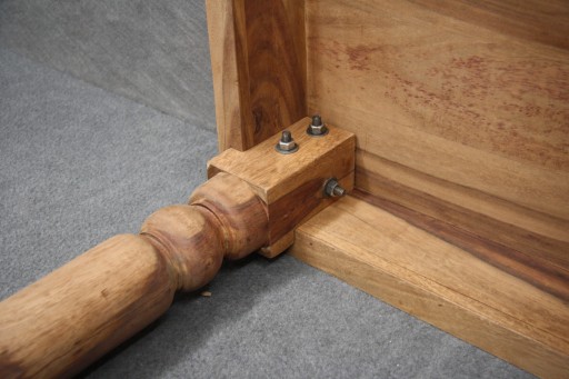 Stół jest nowy. Wykonany w całości z drewna, wykończony metalowymi elementami. Konstrukcja jest wytrzymała, a przez to stół jest stabilny. Charakterystyczne zdobienia oraz toczone nogi są wyjątkowym dodatkiem. Łatwy montaż nóg, wszystko widoczne na zdjęciach.