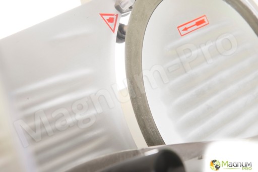 Krajalnica posiada chromowany na twardo nóż o średnicy 22 cm ze szlifem wklęsłym oraz gładkim ostrzem. Nóż ma regulowaną bezstopniową odległość co zapewnia grubość cięcia od 0 do 12 mm.