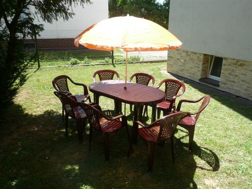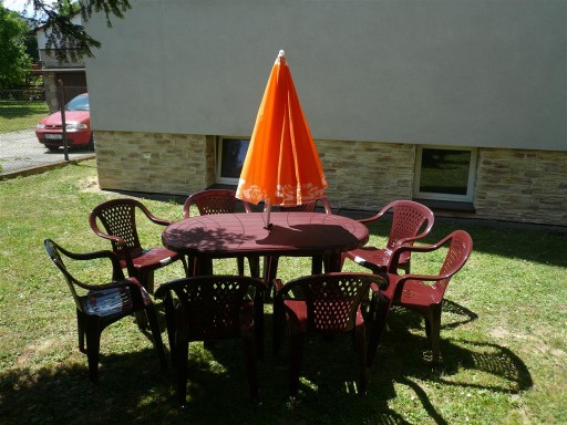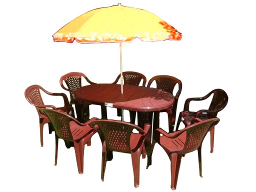 1 duży stół i 8 krzeseł+ PARASOL (zielony, motyw Kiwi)