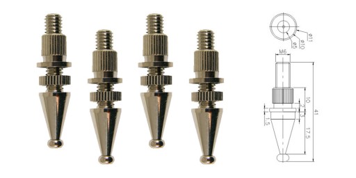 Do zastosowań w kolumnach głośnikowych i nie tylko. Kolec posiada możliwość regulacji wysokości. W zestawie znajdziemy dodatkowo solidne, metalowe gniazdo na gwint.