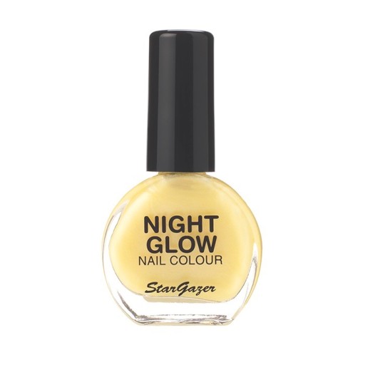 Stargazer lakiery Nigth Glow ładują się w świetle dziennym po to, żeby świecić w nocy. Kolory nie są wyraziste, raczej transparentne, dlatego można je używać jako top coat do innych lakierów. Jako top coat najlepiej sprawdzają się na neonowych kolorach na swoich odpowiednikach. Pomaluj paznokcie żółtym neonowym lakierem, jako top coat użyj żółty night glow. Dla lepszego efektu świecenia w ciemności pomaluj dwa razy lakierem night glow. Świetne na imprezy, gdzie zawsze znajdzie się trochę światła, żeby je doładować, po to, żeby świeciły na parkiecie w ciemności.