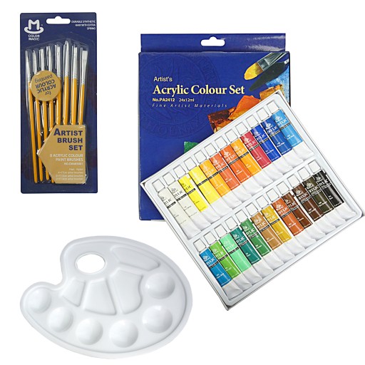 Набор акриловых красок 24 шт Палитра Кисти ПОДАРОК