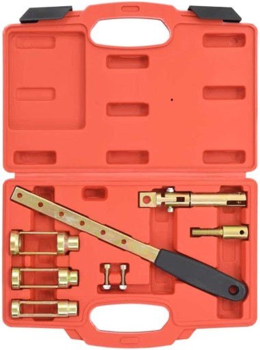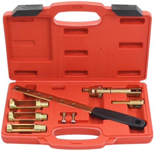 Dźwignia do ściskania sprężyn zaworowych z zestawem trzech różnych końcówek montażowych. Przyrząd znajduje zastosowanie w silnikach 8V, 12V 16V. Produkt z regulacją wysokości.