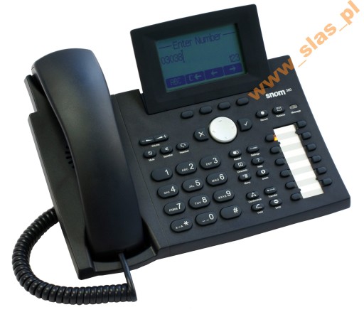 Telefon IP wyposażony w 2 złącza Ethernet, kolorowy wyświetlacz o rozdzielczości 128x64 piksele, identyfikację rozmówcy oraz tryb głośnomówiący. Ponadto, urządzenie obsługuje technologię zasilania Power over Ethernet (PoE). Łącznik Snom dla modułów rozszerzających.