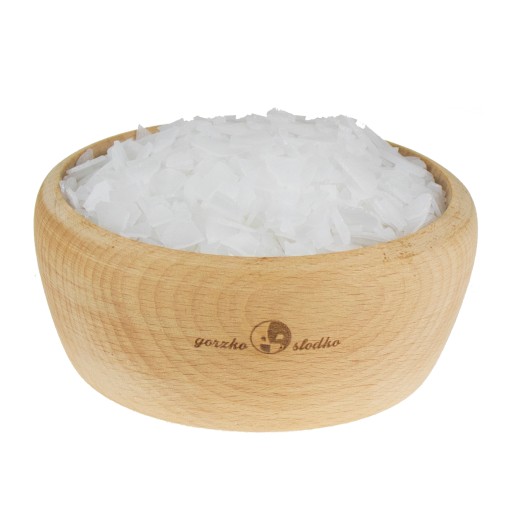 Chlorek magnezu sześciowodny w postaci bezbarwnych i bezwonnych płatków lub kryształów, które łatwo rozpuszczają się pod wpływem wilgoci w powietrzu.