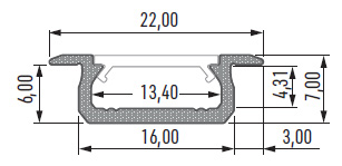 АНОДИРОВАННЫЙ АЛЮМИНИЕВЫЙ ПРОФИЛЬ 1М ДЛЯ СВЕТОДИОДНЫХ ЛЕНТ