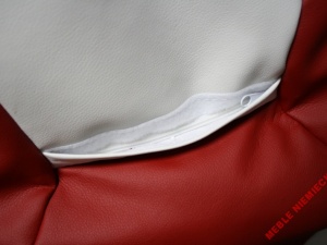 Pufa jest nowa. Wykonana ze skóry ekologicznej w kolorze czerwonym w połączeniu z białym. Wypełniona granulatem styropianowym zabezpieczonym suwakiem oraz rzepą z możliwością usunięcia części wypełnienia i dostosowania twardości. Dostępna w różnych kolorach. Możliwość zamówienia większej ilości oraz sakwy w rozmiarze średnicy 100 cm. Doskonale sprawdzi się w pokoju młodzieżowym jak i salonie oraz sypialni.