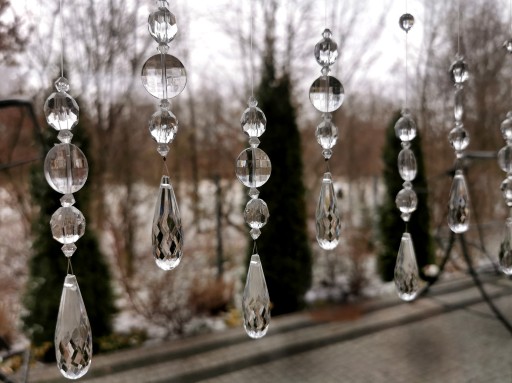 Kryształki nawleczone na transparentną żyłkę cudownie rozpraszają światło, dodając wnętrzu elegancji i stylu. Zawieszkę można zawiesić na każdym karniszu dzięki pętelce znajdującej się na jej końcu.