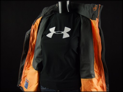 u dołu ściągacze, dwie kieszenie po bokach i jedna pod patką zamka głównego, kaptur chowany w kołnierzu, membrana OMNI TECH, wewnętrzny zamek i zaczepy do wpięcia polaru
