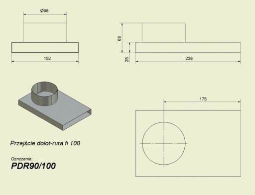 Przejście z króćca dolotu o wymiarach 25x152 mm na rurę fi 100.
