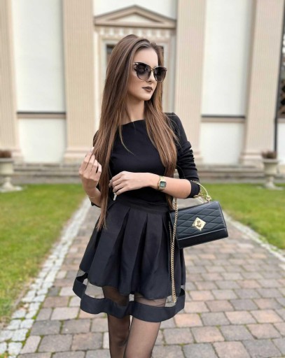 Spódniczka posiada z tyłu kryty zamek, jest noszona w talli.