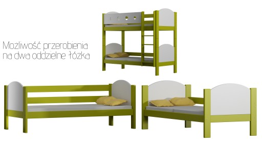 - wykonane zostało z tradycyjnego surowca – sosny w połączeniu z wytrzymałą płytą meblową w zagłówkach,