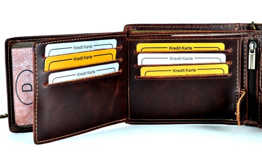 - 2 x dodatkowa przegroda schowana wewnątrz portfela.