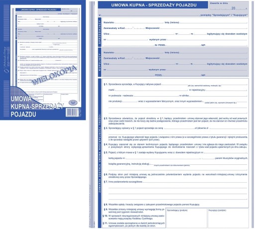 DRUK 650-1 UMOWA KUPNA - SPRZEDAŻY POJAZDU