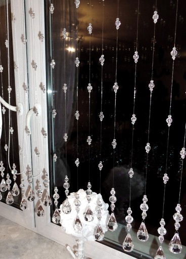 Zawieszka wykonana z akrylowych kyształków. Kryształki nawleczone są na transparentną żyłkę. Cudownie rozpraszają światło, dodająć wnętrzu elegancji i stylu.