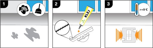 2. Zaczepy mocuj wyłącznie na suchej powierzchni. Niewielką ilość kleju zaaplikuj w pierwszej kolejności na zaczep.
