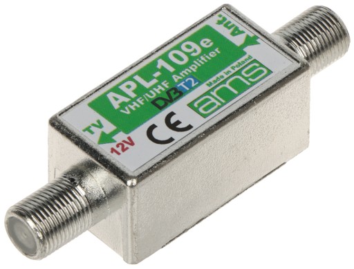 Wzmacniacz antenowy APL-109e przeznaczony do podnoszenia poziomu słabego sygnału TV naziemnej.
