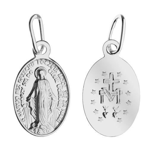 Medalik z przepięknym wizerunkiem Matki Boskiej Niepokalanej. Z przodu medalika grawer z modlitwą : ''O MARYJO BEZ GRZECHU POCZĘTA MÓDL SIĘ ZA NAMI , KTÓRZY SIĘ DO UCIEKAMY''