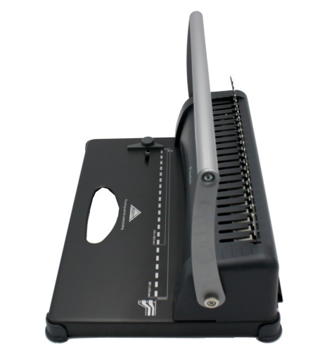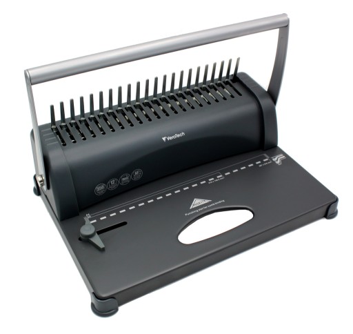 Bindownica Verotech VB-120 jest w stanie jednorazowo zbindować nawet do 350 kartek formatu A4 i umożliwia łatwą oprawę prac. Posiada solidną i masywną konstrukcję, dzięki czemu jej pozycja podczas pracy jest stabilna.