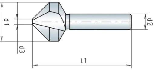 - Pogłębiacz stożkowy 3-ostrzowy 90° z chwytem walcowym