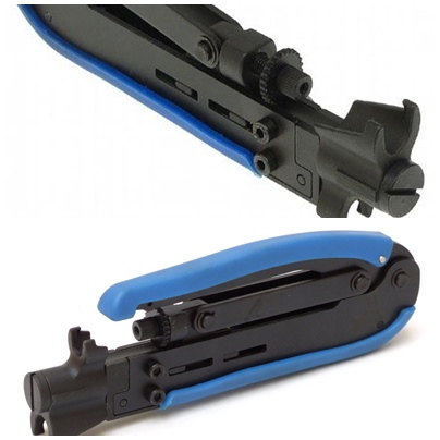 Narzędzie umożliwia zaciskanie złączy typu F, IEC, BNC, RCA na kablach RG59, RG6 oraz RG11.