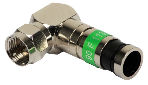 Monolityczne, wykonane z mosiądzu pokrytego niklem, złącze kompresyjne kątowe 90 F 113 przeznaczone jest do kabli typu TRISET. Najwyższa precyzja wykonania wpływa na wygląd i jakość połączenia. Prawidłowe zaciśnięcie jest bardzo proste i daje gwarancję poprawnego i stabilnego połączenia przez długi czas. Złącze kątowe nakręcane 90 F 113 posiada bardzo precyzyjny gwint co sprawia, że nie występują tutaj powszechnie znane problemy z zakręcaniem złącza na gniazdo.