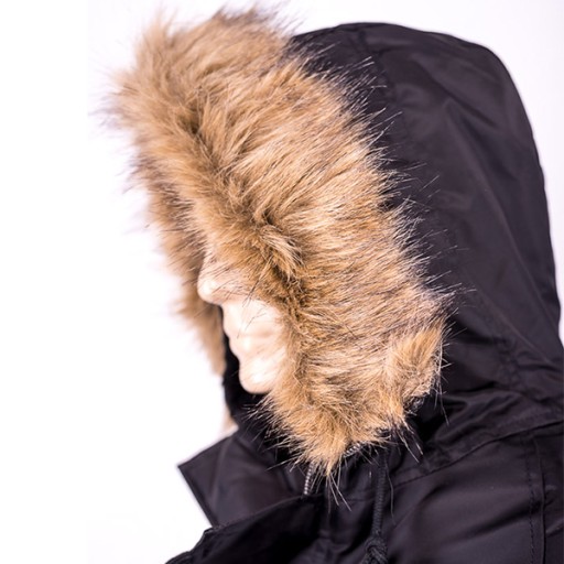 Wyposażona jest w ciepły, regulowany kaptur. Okrycie głowy wewnątrz wyściełane jest bardzo przyjemnym w dotyku i jednocześnie poprawiającym właściwości termiczne futerkiem. Krawędź kaptura obszyta jest ciepłym futrerkiem, które przy całkowitym zapięciu kurtki blokuje przenikanie zimna i wiatru do wnętrza.