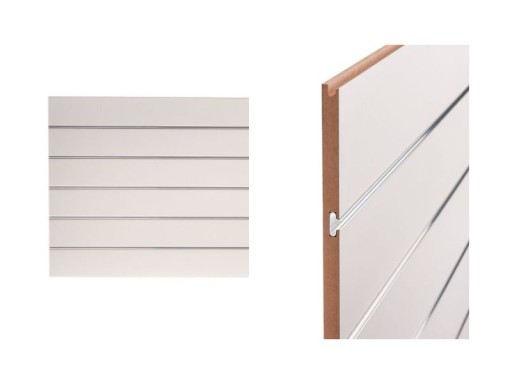 - Panel wykonany z płyty MDF z frezem (rowkiem) rozmieszczonym co 15cm, w komplecie z wsuwkami aluminiowymi (5 sztuk)