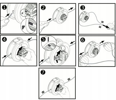 - Wymiana żyłki w tej głowicy odbywa się bez konieczności rozbierania głowicy,