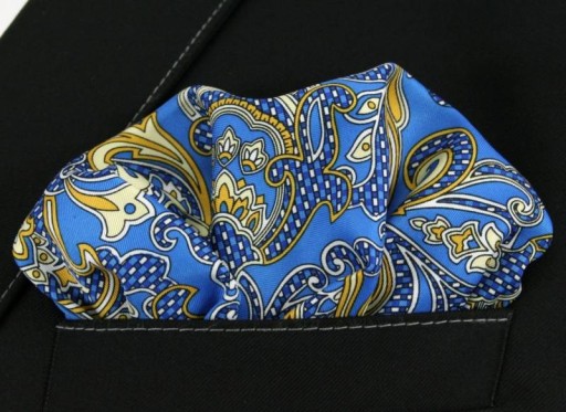 Oryginalna Poszetka Męska CHATTIER - Orientalny Wzór, Niebiesko-Złota