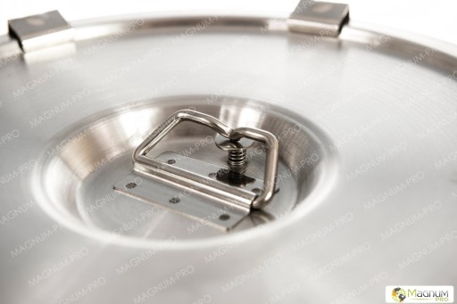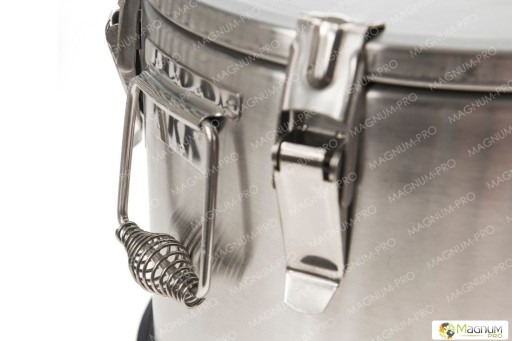 We wnęce pokrywki znajduje się bardzo gruba silikonowa uszczelka, która dociskana aż sześcioma wielkimi, mocnymi klamrami zapewnia bezpieczny transport zawartości, bez ryzyka przecieknięcia.