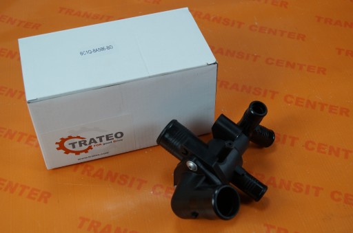 Obudowa termostatu Ford Transit znajduje się w przedniej części silnika. W obudowie montowany jest termostat, który w przypadku zbyt wysokiej temperatury wody w silniku, otwiera pełen obieg. W obiegu tym woda przepływa przez chłodnicę, dzięki czemu pozwala na utrzymanie odpowiedniej temperatury silnika. Plastikowa obudowa termostatu przystosowana jest do Forda Transita MK7, który produkowany był w latach od 2006 do 2013. Można ją zastosować do silników 2.4 TDCI.
