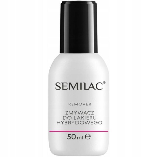 SEMILAC Remover to preparat stworzony do usuwania manicure Semilac, Shellac, IBD jak i innych hybrydowych bądź żelowych stylizacji paznokcia. Wzbogacony lanoliną. Semilac Remover usuwa lakier bardzo skutecznie, jest delikatniejszy od Acetonu Semilac, zawarta w nim lanolina chroni płytkę paznokcia przed nadmiernym wysuszeniem.