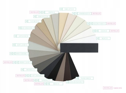 Poniżej przedstawiamy kilka wybranych kolekcji. NA INNYCH AUKCJACH ZNAJDZIESZ PRÓBKI KOLORYSTYCZNE LAMELEK - zobaczysz na nich wszystkie dostępne kolekcje oraz ich opis. Lamele (pióra żaluzji) przedstawione na zdjęciach mogą różnić się odcienie kolorystycznym w zależności od ustawień Twojego monitora, telefonu. Każdy kolor inaczej prezentuje się w świetle dziennym, sztucznym oraz w pomieszczeniu o kolorystyce jasnej, ciemnej, wielobarwnej. Zamów próbki i sprawdź jak wygląda struktura oraz kolor w Twoim pomieszczeniu oraz różnym jego oświetleniu.
