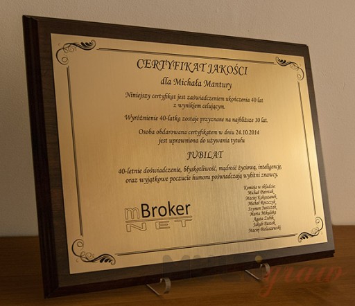 Grawerowany dyplom na podkładzie drewnianym na dowolną okazję