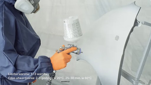 Wysokiej jakości dwukomponentowa, wykończeniowa szpachlówka natryskowa przeznaczona do napraw samochodów.