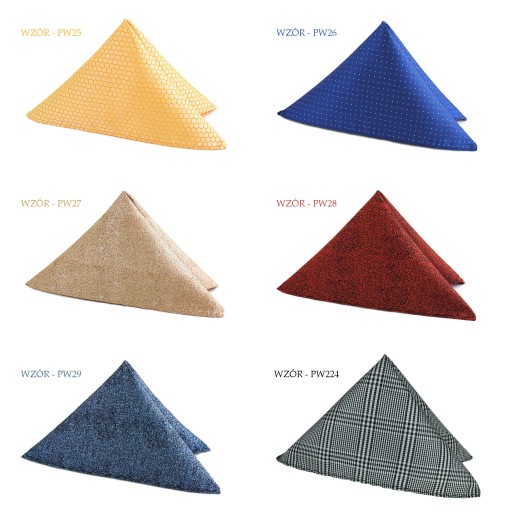 Poszetka jest kwadratowa o wymiarach 22 x 22 cm , dzięki temu możną ją dowolnie składać i pasuje do każdej kieszeni marynarki.