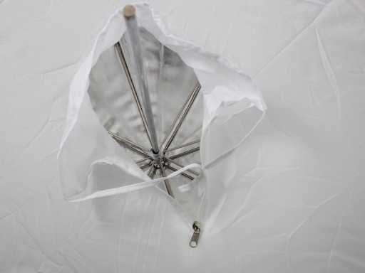 Zewnętrzna strona jest pokryta czarnym materiałem, dzięki czemu światło nie przedostaje się na zewnątrz z tyłu parasolki. Wewnętrzna strona pokryta jest srebrnym płaszczem od którego odbija się światło.