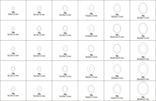 Zestaw 300 sztuk podkładek aluminiowych pod korki spustowe oleju. Zestaw zawiera rozmiary 5x9x1.0mm do 28x36x2.0mm. Całość umieszczono w wygodnym opakowaniu typu "sortownik".