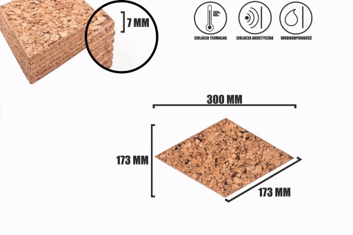 Tabliczka korkowa samoprzylepna 173mmx173mmx7mm naturalna w kształcie rombu znajdująca się w naszej ofercie została obłożona klejem, który zabezpieczono folią. Korek samoprzylepny jest niezwykle prosty w użyciu, gdyż należy jedynie ściągnąć folię z tablicy korkowej i usytuować w dogodnym dla siebie miejscu. Klej jest bezzapachowy i błyskawicznie schnący, co sprawia, że z chęcią używa go wiele zainteresowanych osób. Krawędzie są szlifowane pod kątem 45stopni, tak aby przy łączeniu ze sobą elementów pasowały do siebie idealnie, dając finalnie estetyczny wygląd.