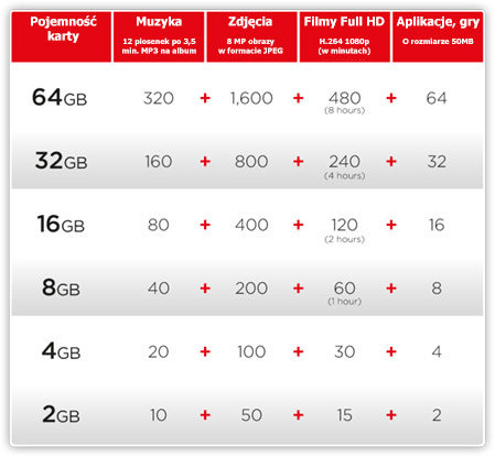 Sprawdź ile danych zmieścisz na sprzedawanej karcie. Karty o innych pojemnościach znajdziesz TUTAJ