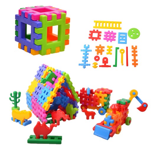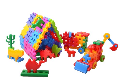 Zestaw oprócz dużych, bezpiecznych kwadratów o wymiarach 10,5 x 10,5 cm, może zawierać np: