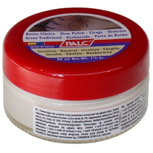 Klasyczna pasta do obuwia w puszce plastikowej.