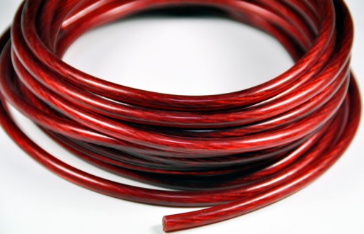- kabel zasilający czerwony CCA-OFC(transparentny): 10 Ga, długość: 5m