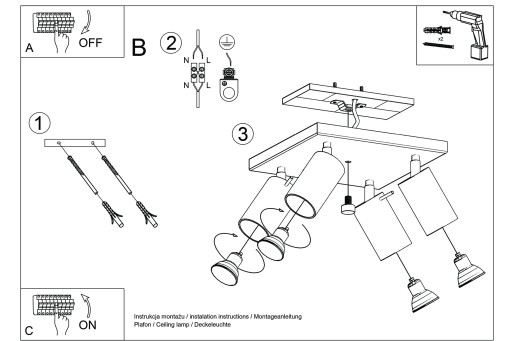 Zapomnij o uciążliwym montażu i omdlałych ramionach. Plafon sufitowy na 4 klosze zamontujesz szybko i z łatwością, więc wystarczy chwila, by zacząć cieszyć się jego blaskiem.