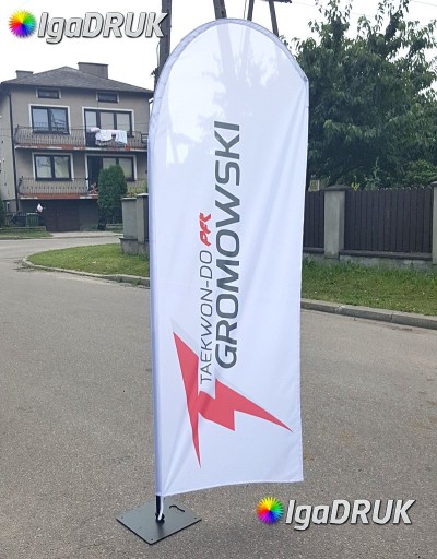 MATERIAŁ FLAGOWY POLIESTROWY, NADRUK KOLOROWY WYKONUJEMY TECHNIKĄ SUBLIMACJI. KONSTRUKCJA - ALUMINIUM + WŁÓKNO SZKLANE.