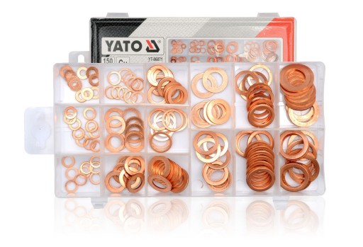 Zestaw podkładek miedzianych do zastosowań warsztatowych. Zawartość opakowania: 10 szt: 5x10x1; 10 szt: 8x11x1; 10 szt: 11x17x1,5; 10 szt: 12,5x20x1,5; 10 szt: 15x20x2; 10 szt:16,5x24x2; 10 szt: 6x10x1; 10 szt: 10x16x1; 10 szt:14x18x1; 10 szt: 7x10x1; 10 szt:10,5x17x1,5; 10 szt:12x20x1,5; 10 szt:14x20x1,5; 10 szt: 16x22x2; 10 szt: 17,5x24x2. Całość zapakowana w poręczne plastikowe pudełko z przegrodami zapewniającymi porządek i prawidłową segregację rozmiarów podkładek.